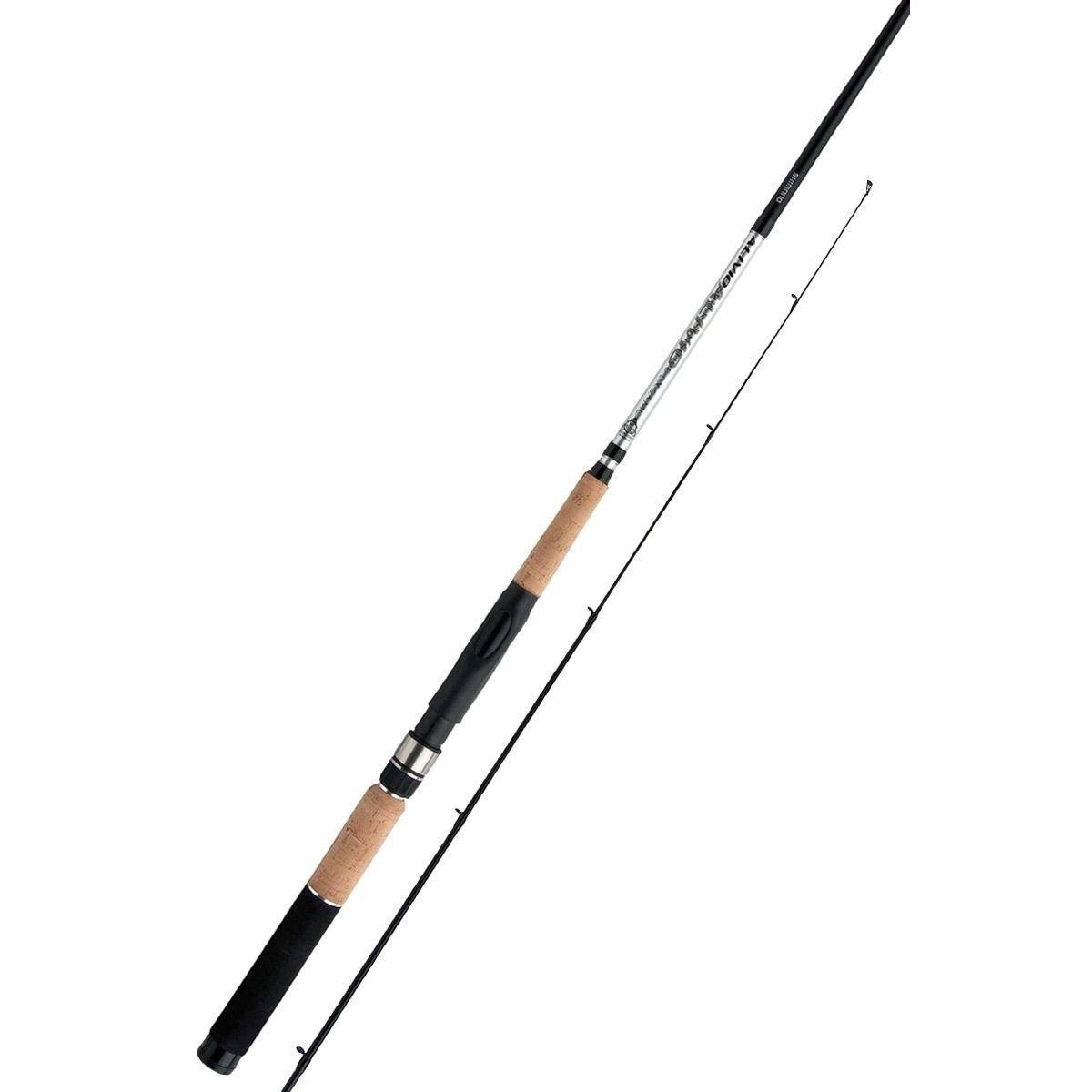 Модель ULTRA SPIN 25 2.10 можно смело назвать лучший универсальный спиннинг 2020, длина палки 270 см, строй – средний, тест изменяется от 5 до 25 г. Весит спиннинг довольно много – 250 г, однако против него не может устоять даже щука весом в дюжину кило. Жесткая палка посылает блесну на несколько десятков метров, чутко реагирует на поклевку, не ломается при сопротивлении хищника. Единая рукоятка сделана из пробки, ее длина почти 60 см, можно делать силовой заброс двумя руками.