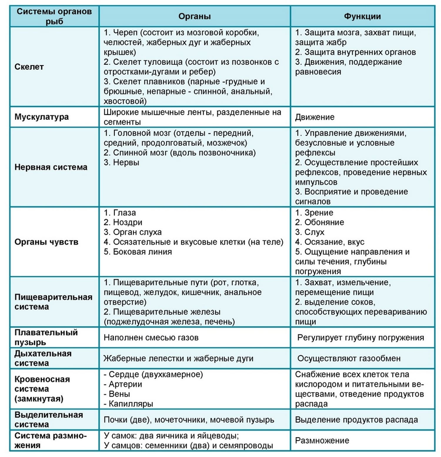 Внутреннее строение рыбы