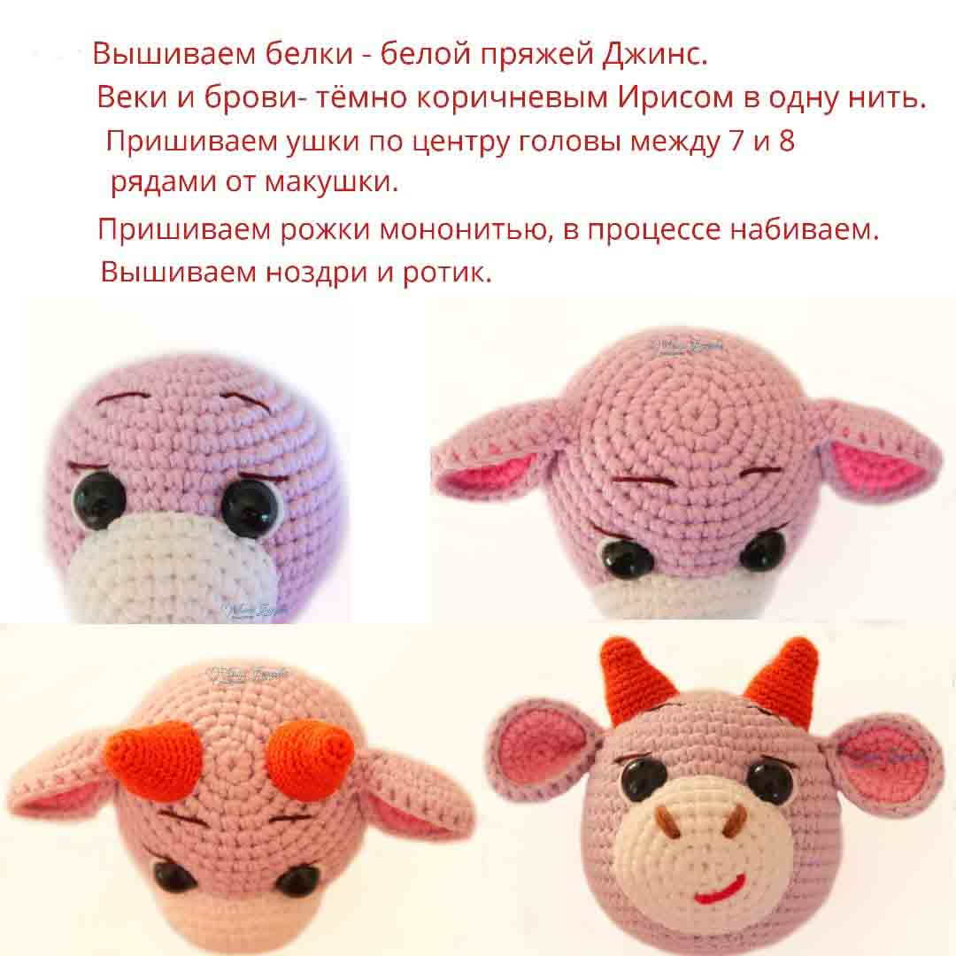 Рекомендуется вязать бычка из пряжи YarnArtJeans, можно взять сиреневый, розовый, белый и коричневый цвета.
