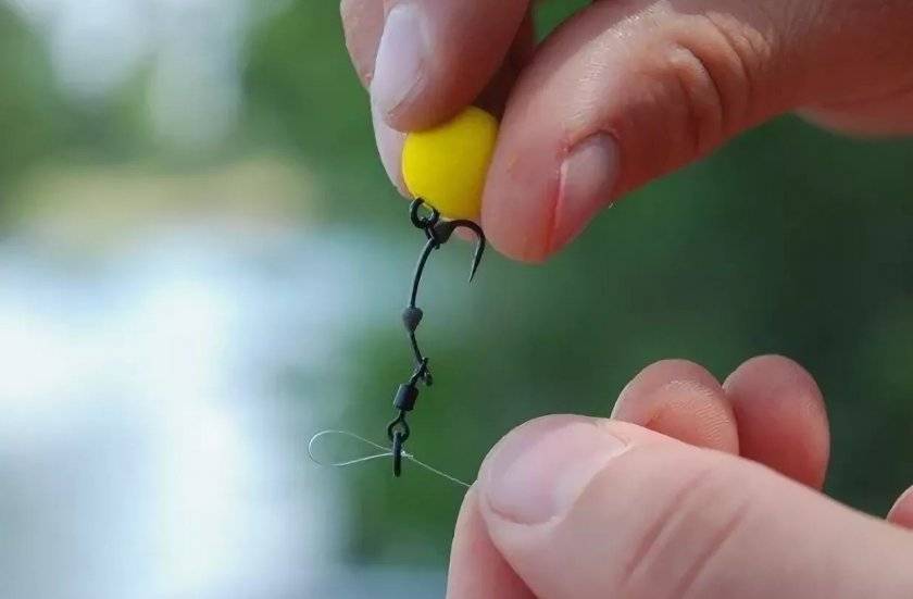 Для быстрой замены оснасток используют застежки. Минимизировать перекручивание поводка поможет вертлюг. Чтобы защитить узел от деформации, применяют буферные бусинки. Длину отвода, о чем уже упоминалось выше, подбирают под настроение карпа.