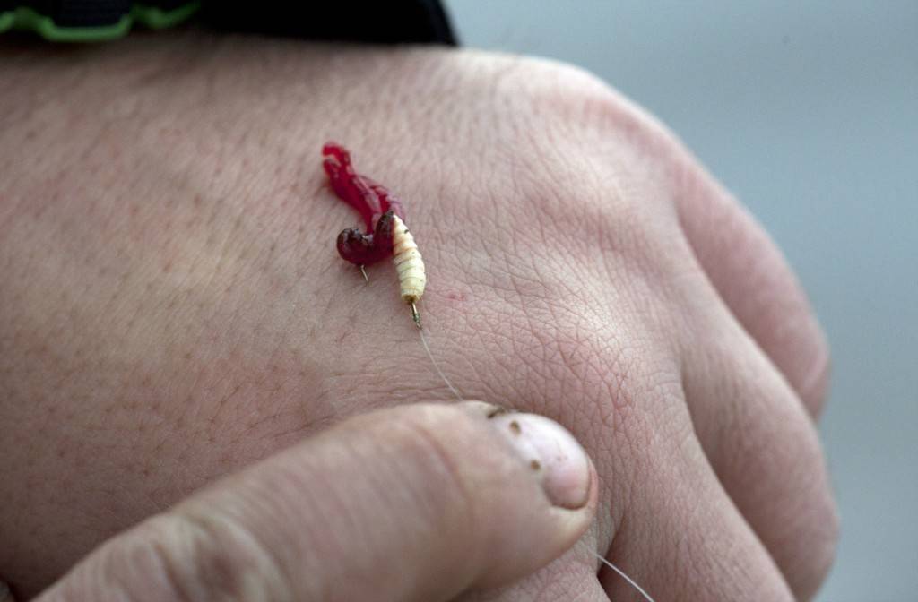 Личинку мухи можно сочетать с другими живыми приманками (мотылем и червем)