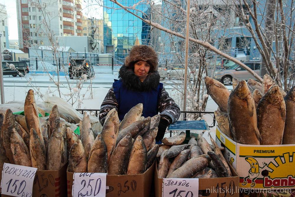 3. В Якутске я накупил строганины у этого продавца, она сделала мне скидку в обмен на фото-) Кстати, даже в Якутии строганина стоит недешево, а в Москве она безумно дорога.