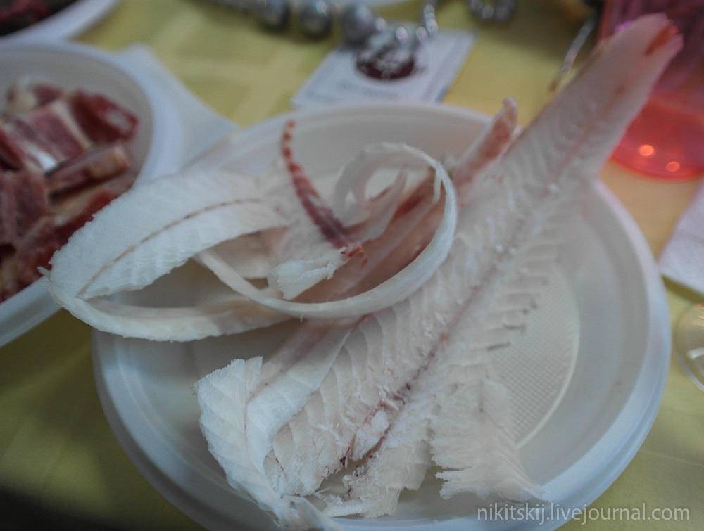 5. Строганина подаётся к столу в сыром, замороженом виде, нарезанная «стружкой». На вкус как ледяная рыба — очень вкусно.