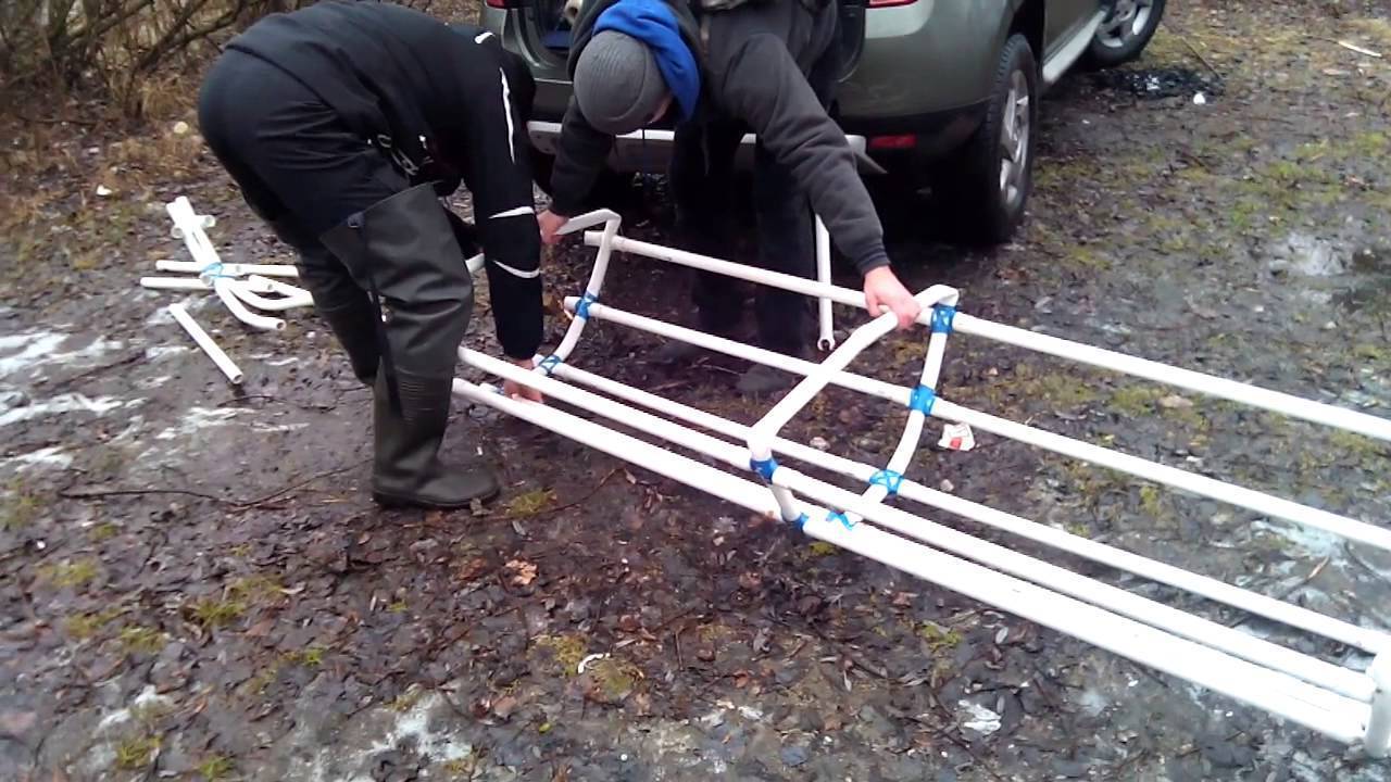 Самодельная прозрачная байдарка из веток и пленки Homemade stretch wrap kayak