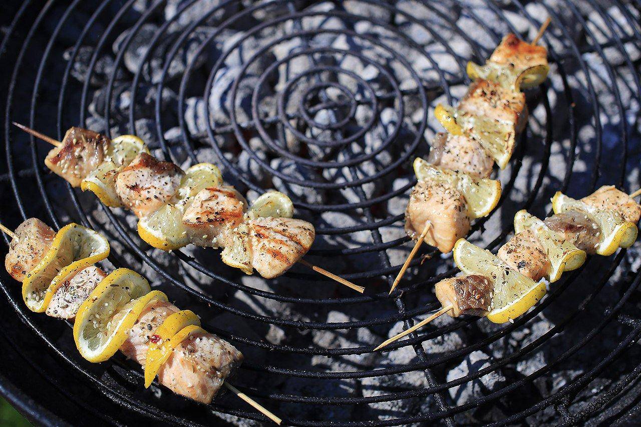 Самое главное то, что нужно помнить: рыбный шашлык нужно жарить на хорошо раскаленных, но без пламени углях, в противном случае рыба сгорит. Когда куски рыбы нанизаны, помещаем шампуры на мангал на минимальное расстояния от углей. Поворачиваем шампуры с шашлыком часто, чтобы рыба не только прожарилась одинаково со всех сторон, но и не успела сгореть, ведь рыбное мясо намного нежнее мяса животного.