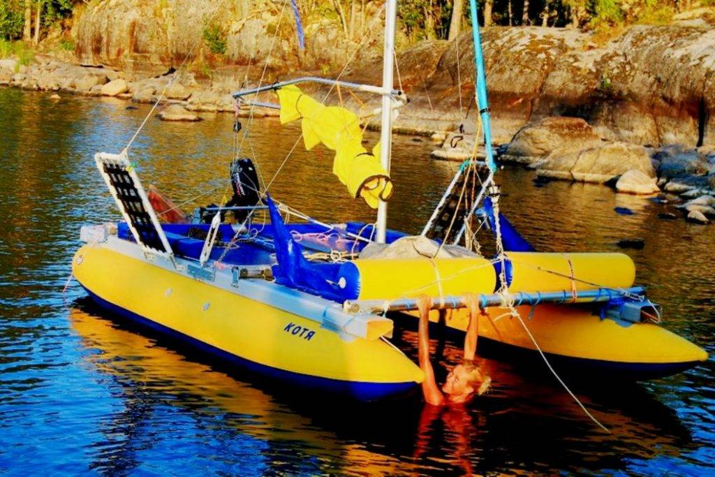 Перед тем, как самостоятельно изготовить катамаран и ходить с ним под парусом, вы должны понимать, что данное судно имеет наружную оболочку, которая обеспечивает прочность, в том числе внутренней камеры, отвечающей за герметичность конструкции. Наличие обводов снижают сопротивление воды при хождении под парусом. Сам же каркасный катамаран выполнен из дюралюминиевых трубок, держащихся на болтовых креплениях посредством фасонных гаек.