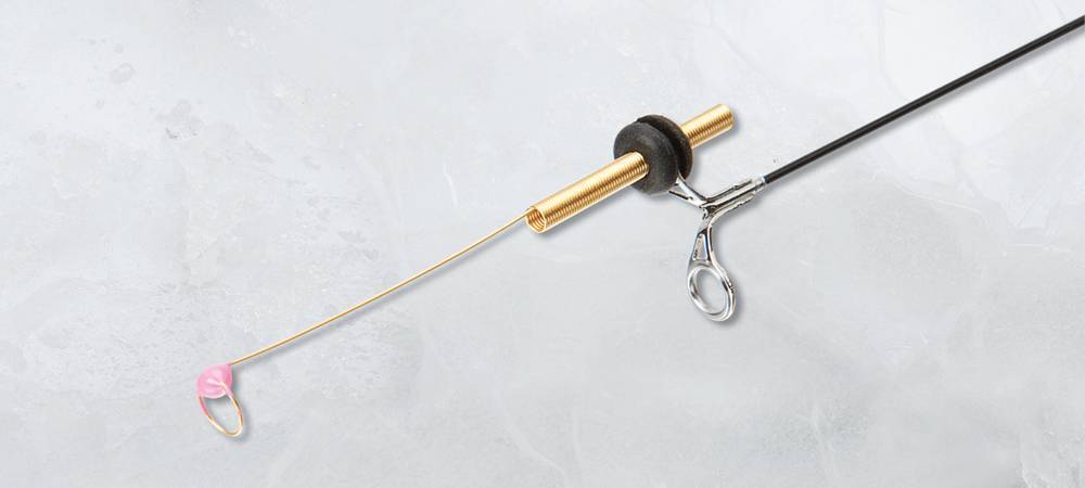 - С помощью проволоки необходимо изготовить небольшую петельку с диаметром, который меньше ширины узкой части пружины. Именно этот отрезок будет выполнять роль индикатора поклевок.