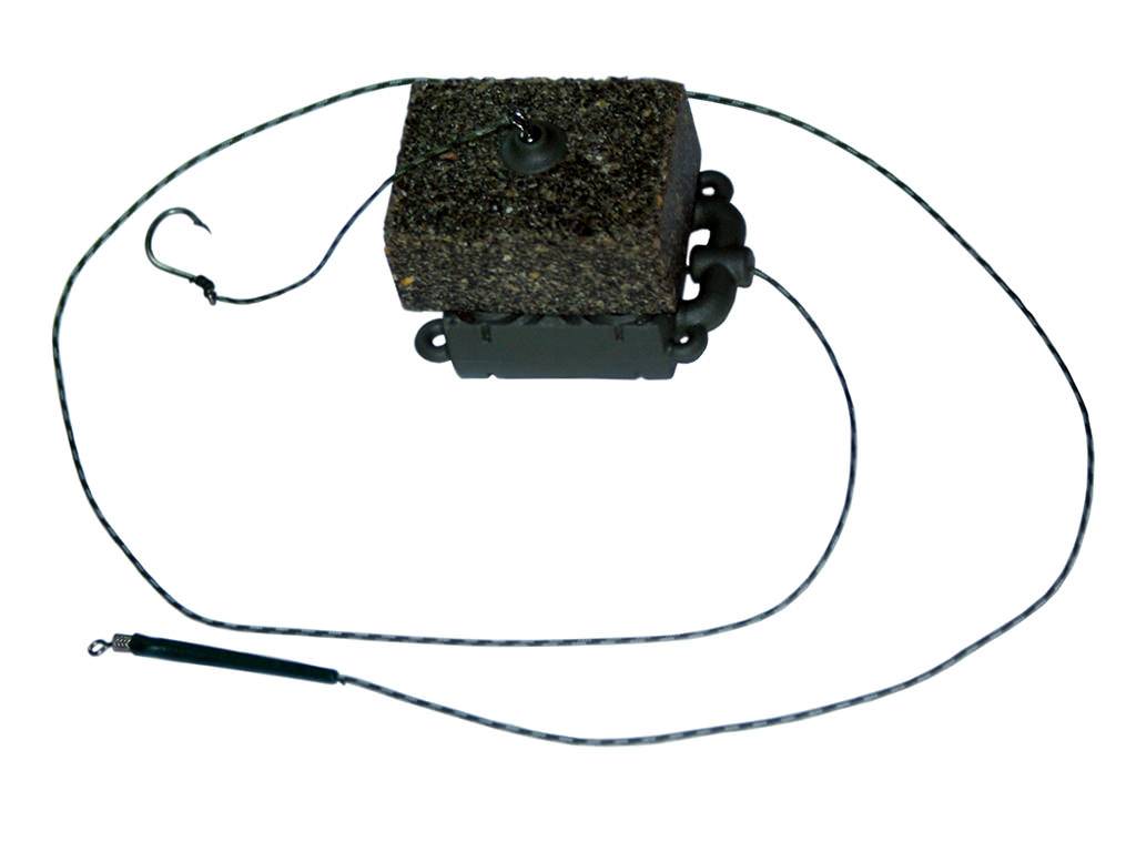 На кормушке предусмотрены специальные места для использования глухой закрепки. Леска прочно фиксируется непосредственно к ним.