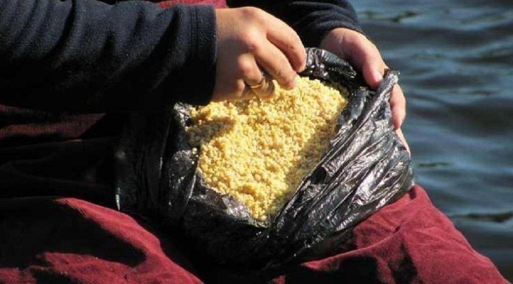 Клейкость этой смеси хорошо подходит для водоемов с медленным течением. Для рыбалки на реке с быстрым течением к смеси рекомендуется добавить 1 стакан распаренного геркулеса.