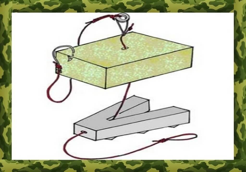 - Брусок макухи крепят к грузилу резинками или привязывают леской. Крючки втыкают в макуху, чтобы не допустить запутывание оснастки.