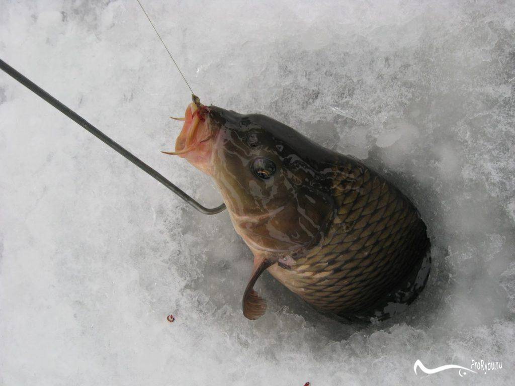 Зимой рыба не тратит энергию. Обитает в ямах и совсем не двигается. Зимой очень редко, когда выпадает возможность поймать карпа, чаще ловится рыба помельче.