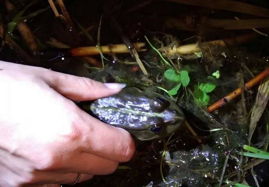 Важным моментом станет и наживка, точнее ее добыча. Лучше всего конечно же использовать лягушек из того же водоема, в котором и планируется рыбалка. Для этого в прибрежной зоне, желательно в зарослях, при помощи тряпки или сачка с мелкой сеткой вылавливают достаточное количество земноводных. Отыскать приманку можно под лежащими в водоеме деревьями и ветками, а также камнями.