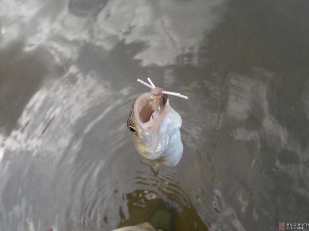 Сразу двух хищников можно поймать, прикрепив к крючкам несколько мушек. Этим способом рыба ловится весной и осенью в придонных слоях. Чем больше будет размер приманки, тем крупнее может попасться трофей.