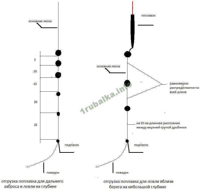 Леска выбирается в зависимости от массы снасти и расстояния, на которое предстоит ее забрасывать. При дистанции до 30 м используют сечение 0,12-0,16 мм. При большей дальности лучше остановить выбор на плетенке с диаметром 0,1-0,12 мм. На донные удочки есть смысл ставить лесу более прочную, в 0,2 мм.