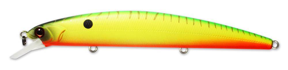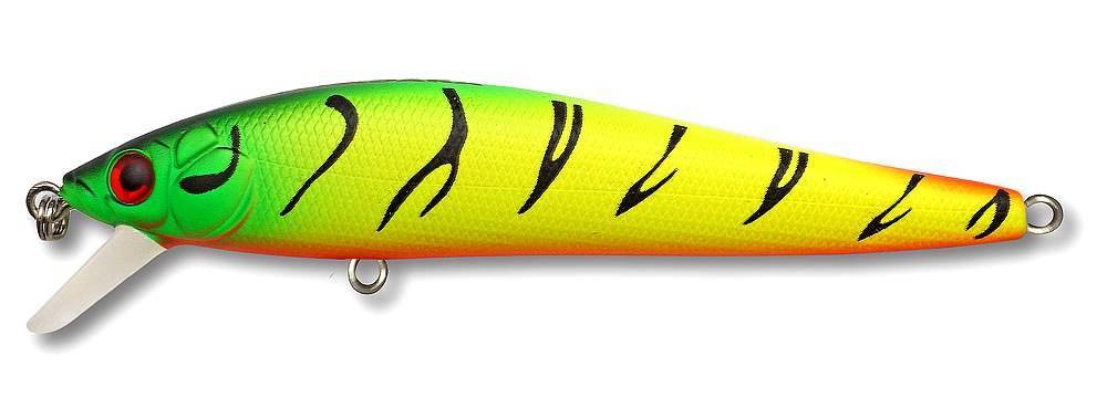 Это плавающий воблер, вес – 7.75 гр., длина соответствует маркировке и составляет 90 мм. К нему прикреплены два тройника, рабочая глубина доходит до полуметра. Техника ловли – кастинг и твичинг. Применяется равномерная проводка, при которой приманка великолепно ведёт себя уводе. Можно также проводить и рывками. Этот вид используется, когда идет ловля спокойной рыбы. Очень хорошо подходит для ловли щуки и окуня. Средняя цена составляет 9 $.