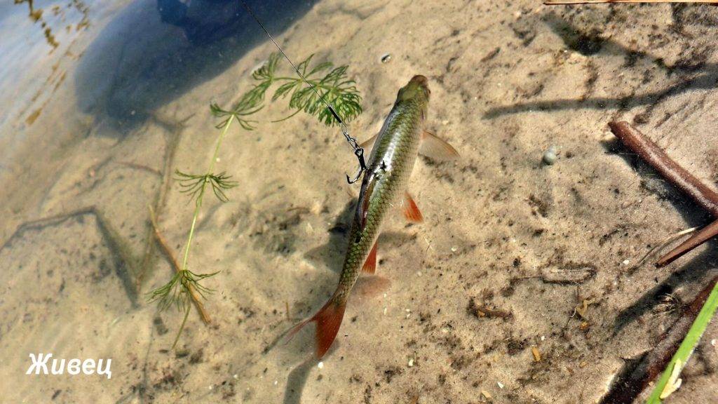 Живца насаживают на снасть из двух крючков. Один из них должен быть закреплен на спине наживки. Если использовать один крючок, сильный жерех сорвет добычу и уплывет. Лучшими живцами станут уклейка и верховодка, но так как эти рыбки плохо держатся на крючке, спиннинг в данном случае использовать не целесообразно.