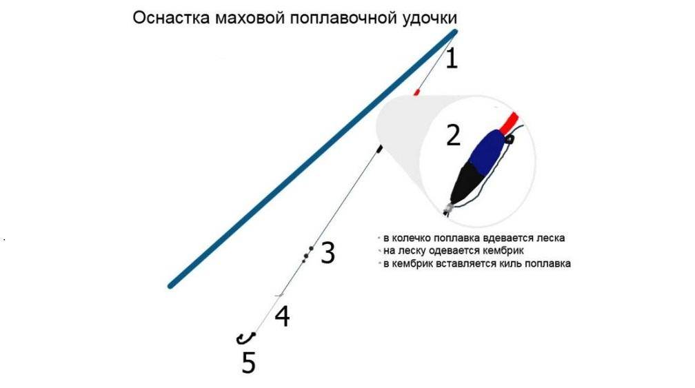 Оснастку маховой удочки на карася с поплавком готовьте тщательно.