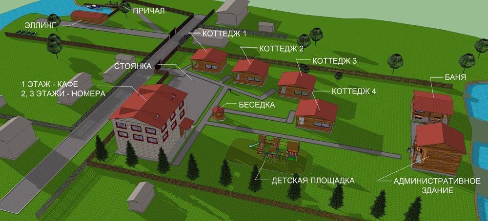 На территории базы выстроен мини-отель «Дом Рыбака» на 8 номеров и несколько зимних коттеджей различной вместимости.