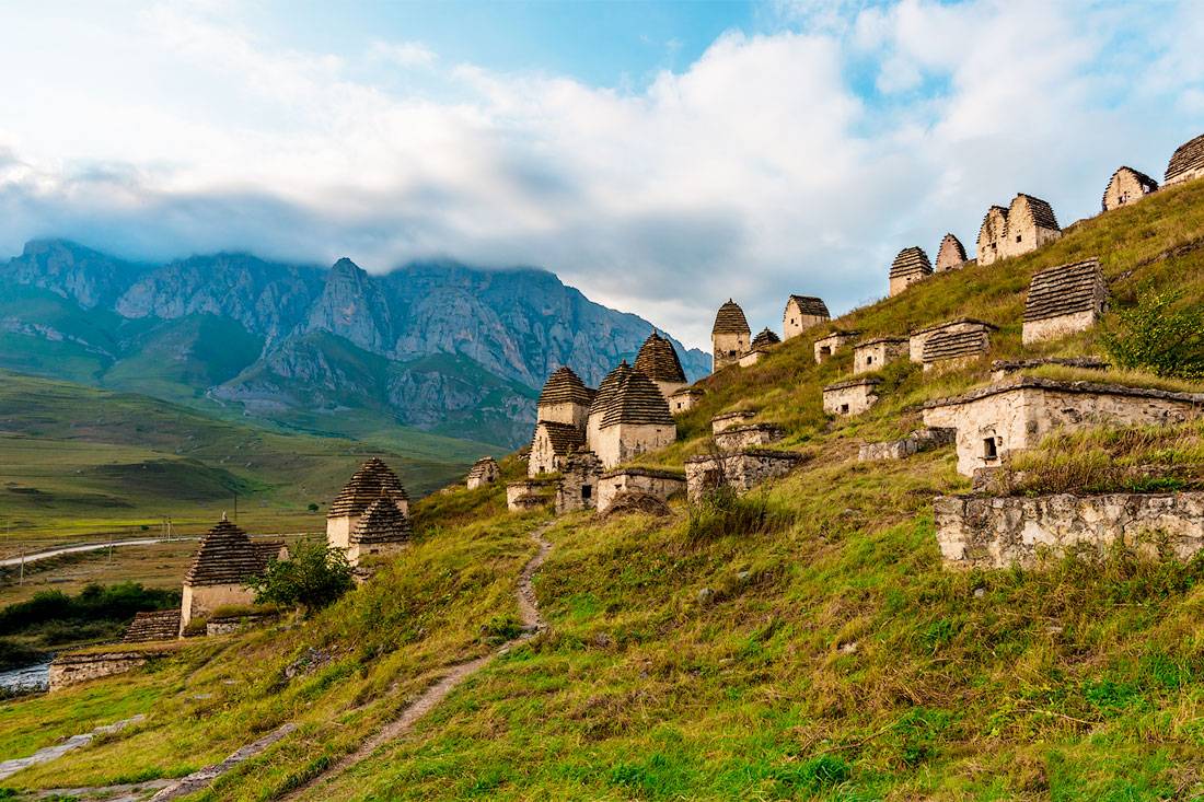 Даргавс – горное поселение, к которому ведет единственная дорога-серпантин. В километре от него расположено то, что на первый взгляд кажется обычной деревушкой. В действительности это настоящий некрополь, «город мертвых». Он находится на высоком и живописном горном склоне, открытом ветрам, и заметен издалека.