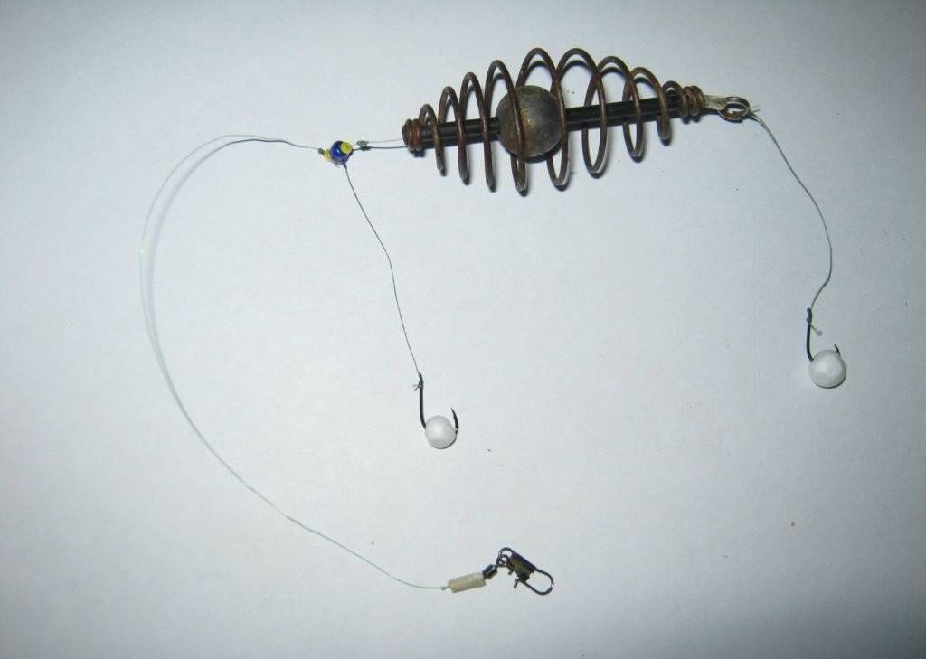 Особенность фидерной оснастки на плотву – наличие длинного поводка (1–2 метра).