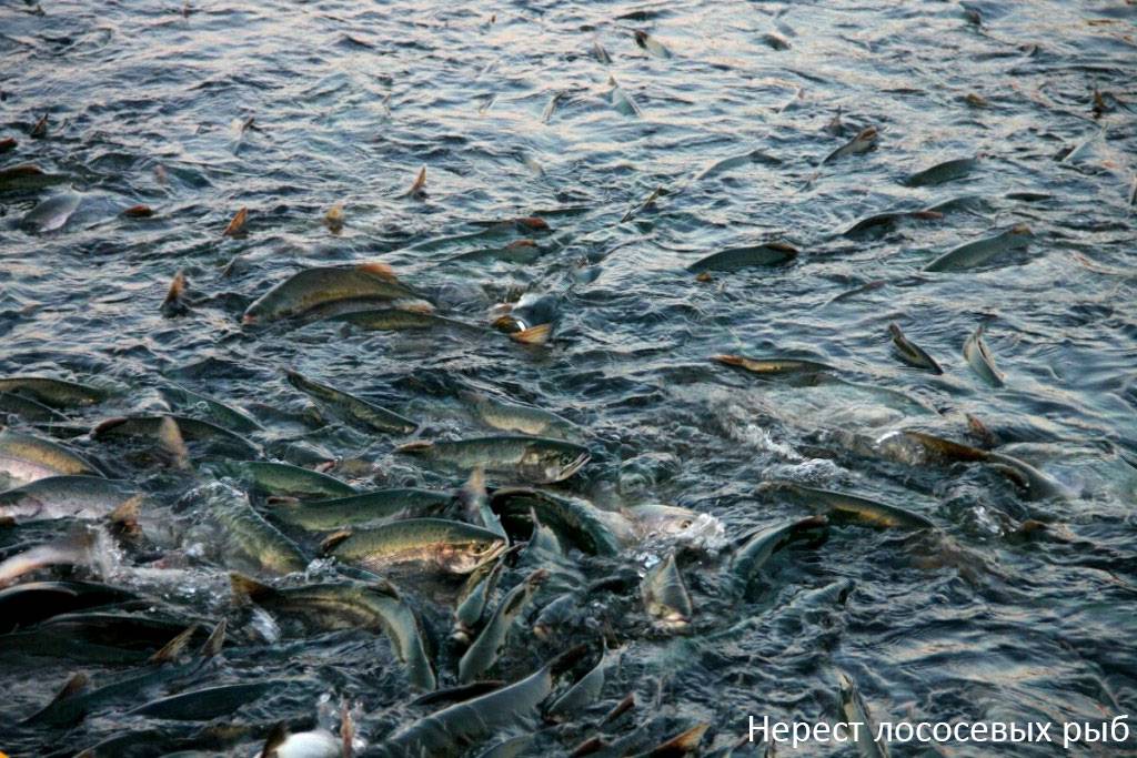 Еще задолго до начала нереста, где-то в конце весны (конец мая) или в самом начале лета (начало июня) рыбы плывут очень близко к поверхности воды и достаточно быстро, образуя при этом сильное волнение. Начинается нерест лосося на Камчатке когда осень сменяет лето, а точнее с октября и заканчивается декабрем, все зависит от вида рыбы.