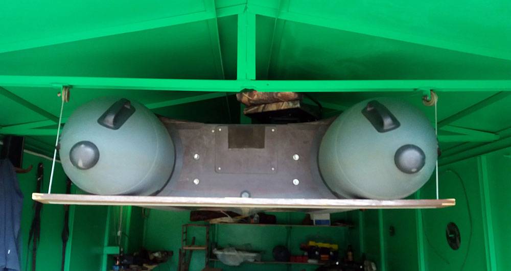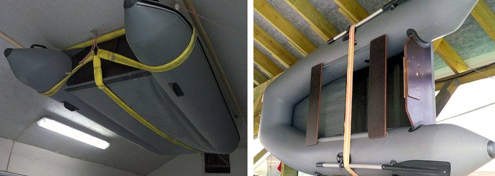 Один из лучших способов уберечься от грызунов, правильно и удобно хранить ПВХ-лодку, – подвесить ее под потолком в надутом состоянии. Так вы и от мышей уберегите судно, и от деформации и трещин лютые морозы. Конечно для этого потребуется гараж, либо другое хозяйственное помещение и немного смекалки.