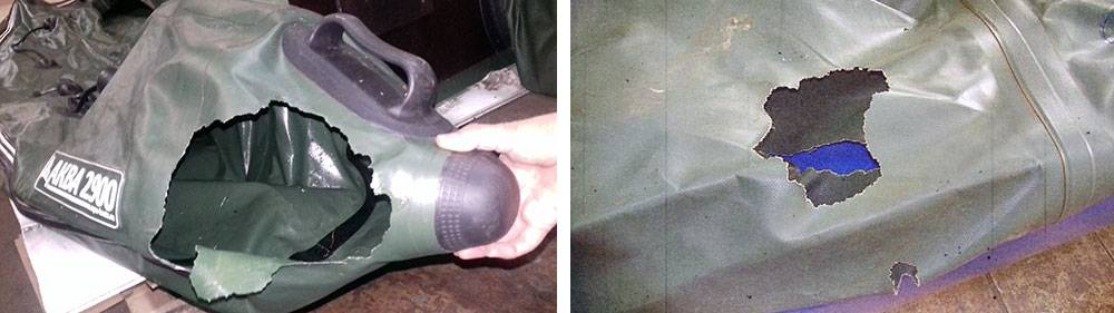Борт надувной лодки можно случайно проколоть крючком, а в случае низкого качества оболочки ее повредит даже твердая и острая кость рыбы.
