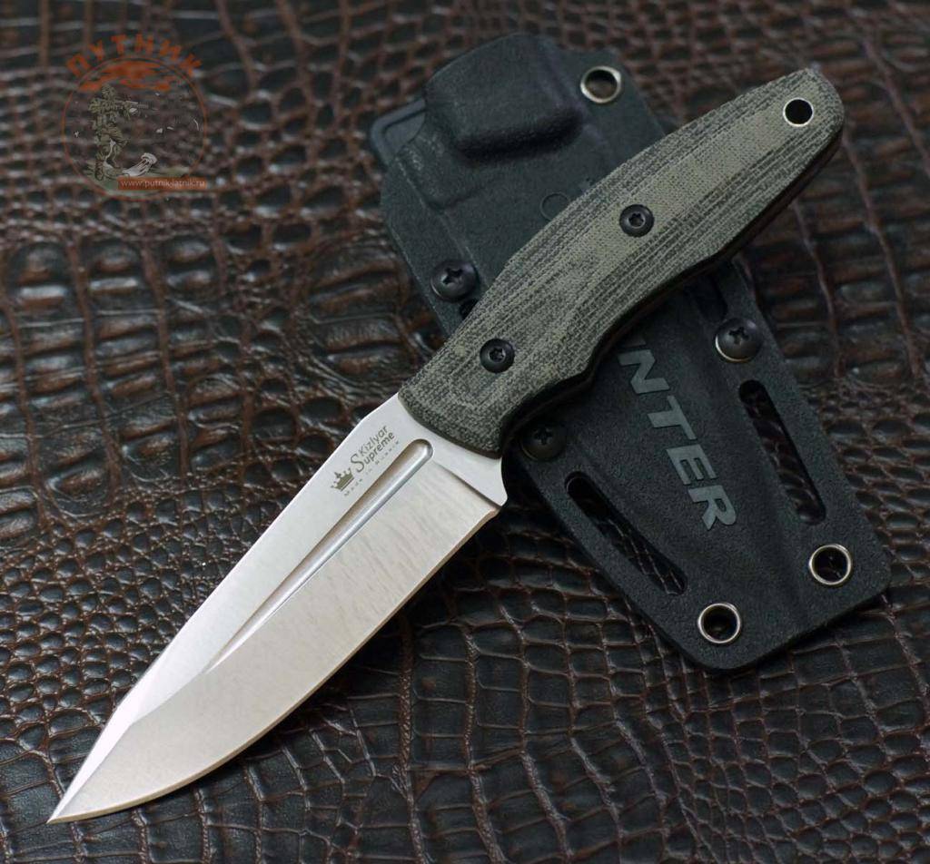 Кстати, говоря про нож в снаряжении охотника-промысловика, можно дать пару советов о выборе рукояти. Сразу откажитесь от бересты и кожи. Да, они смотрятся весьма изящно и прекрасно лежат в руке. Но такие рукояти легко впитывают влагу и запах. Разделав тушу животного, вы наверняка испачкаете рукоять в крови – как результат, отмыть ее будет очень сложно, а запах несвежего мяса долгое время будет сопровождать нож. Лучше подойдет либо эластрон, либо стабилизированная древесина. Они оба не боятся влаги, не впитывают запахи, прекрасно лежат в руке – как сухой, так и окровавленной.