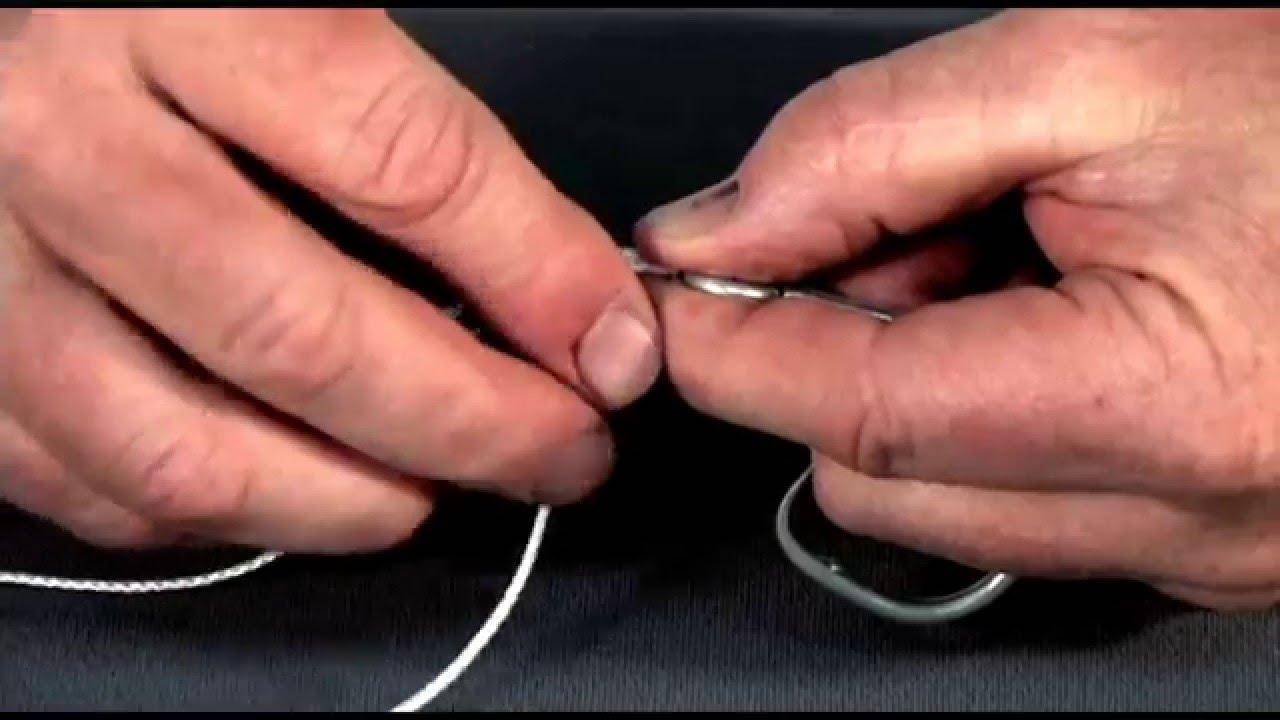 Этот же узел применяется для привязывания любого металлического элемента к оснастке, будь то карабин, вертлюжок или даже крючок за цевье. Вот последовательность выполнения узла клинч: