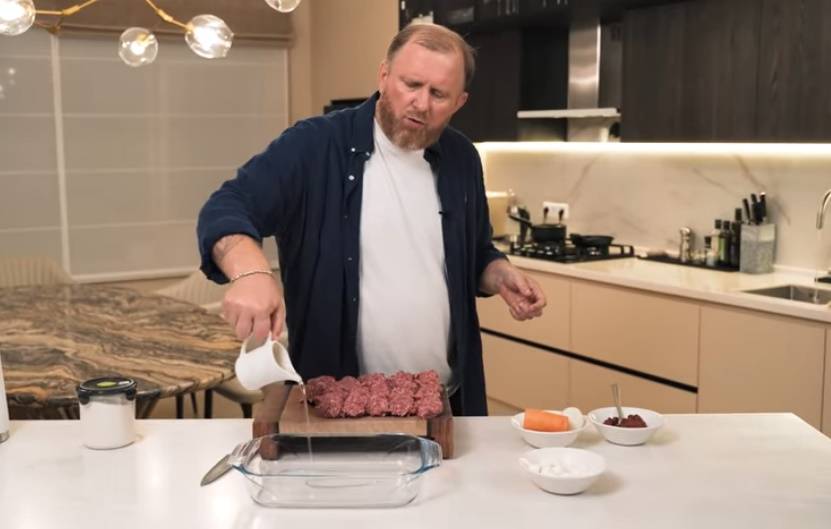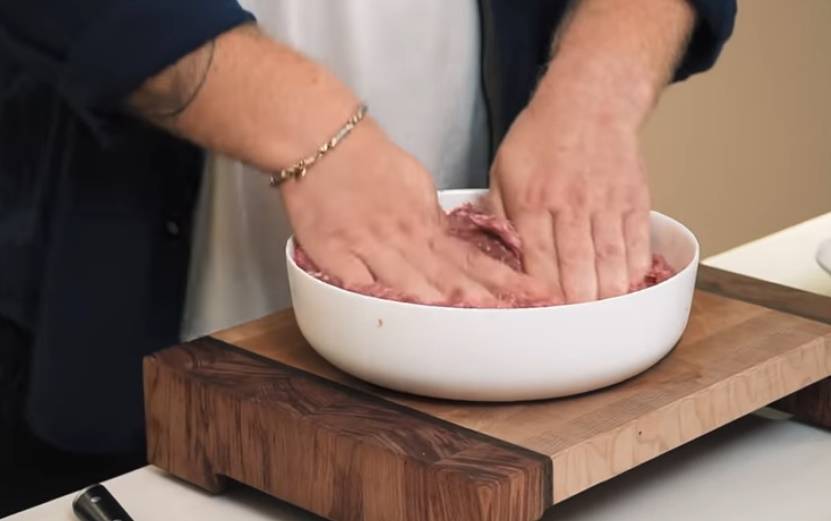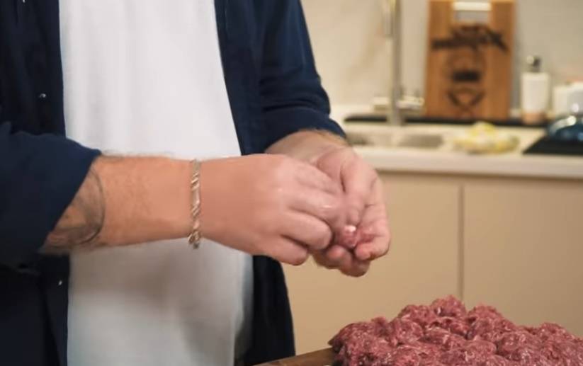 При этом он должен иметь не слишком крупную текстуру. Далее Ивлев посолил и поперчил массу. Затем разделил фарш на небольшие кусочки и смазал форму под тефтели растительным маслом.
