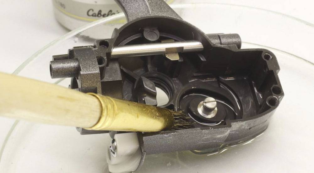 Далее очищаются все детали, после чего их нужно просушить, чтобы смазка для катушки от спиннинга легла уже на чистую поверхность.
