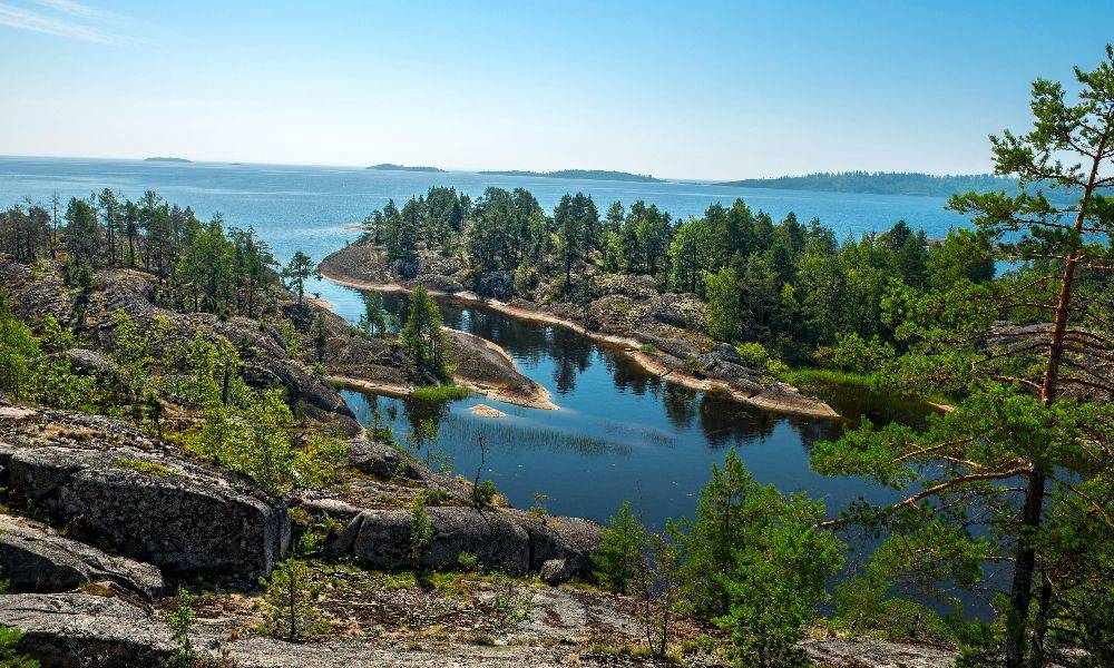 Более 500 больших и малых островов расположены по всей территории Ладоги. Валаамский островной архипелаг, состоит из больших участков скал и земли.