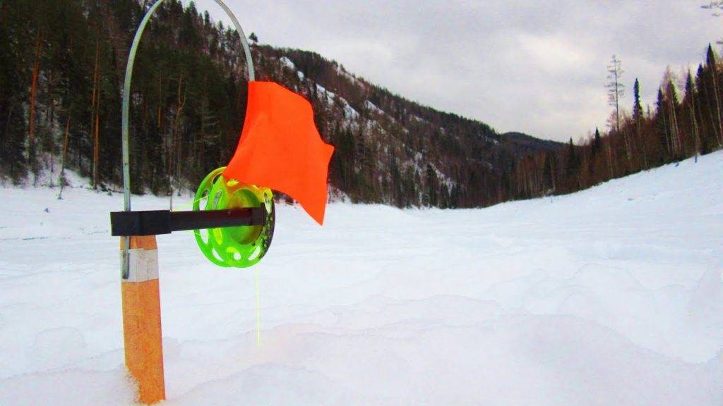 В качестве сигнализатора поклевки используется гибкая металлическая пружина. На ее конце крепится «флажок» из ткани яркого цвета.