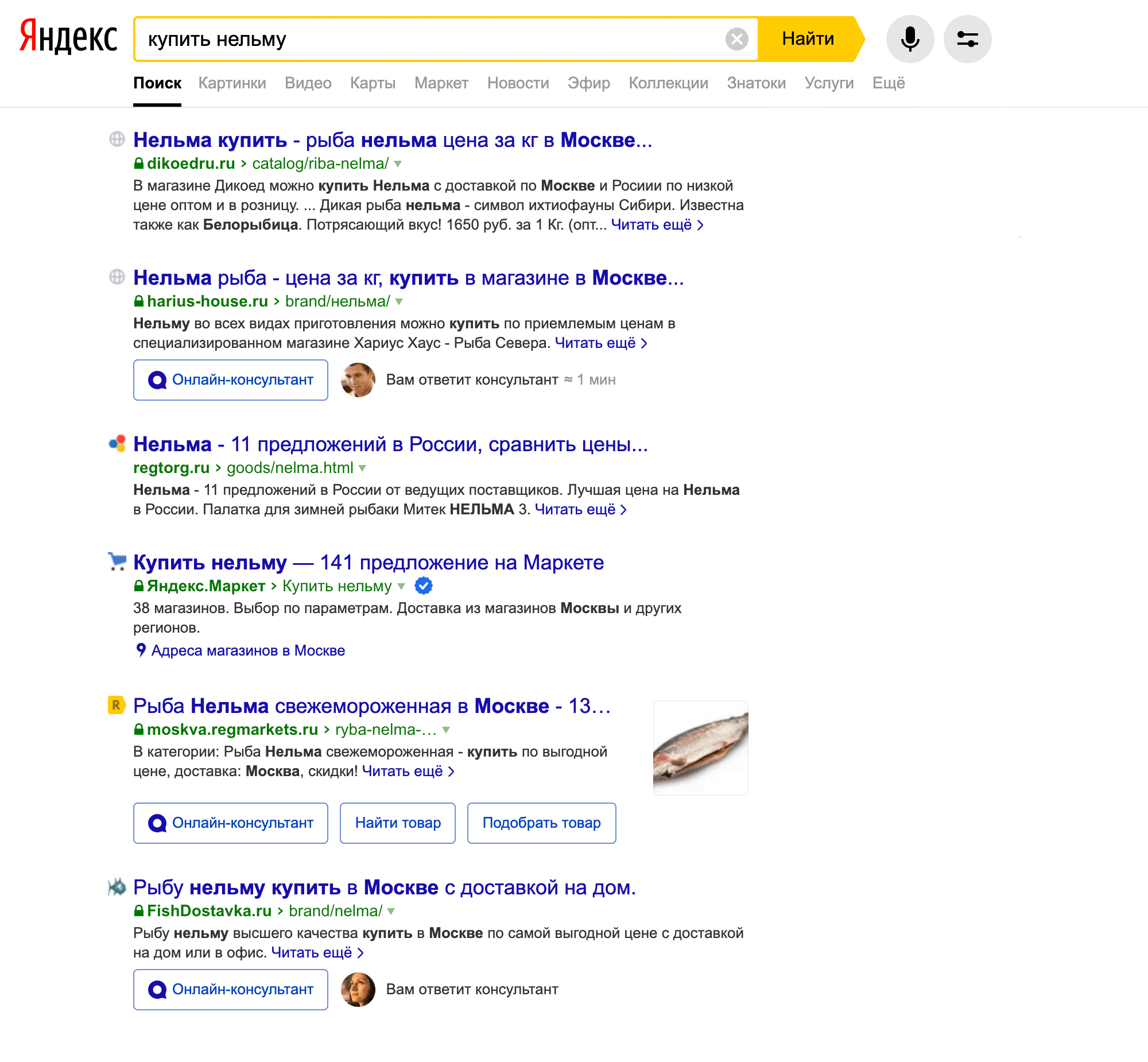 Два из трех рыбных магазинов на первой странице Яндекса принадлежат Сергею. Через таких «конкурентов» он продает свою же рыбу