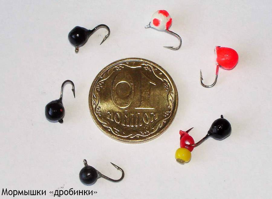 - «дробинка» — широко применяемая приманка для зимней ловли рыбы. Сделана под круглую форму, имеет разные цветовые оттенки. Подходит для лова окуня, плотвы;