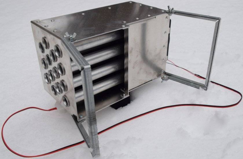 у теплообменника должны присутствовать все защитные элементы, которые не дадут выйти открытому пламени наружу, а также не позволят рыбаку отравиться продуктами горения;