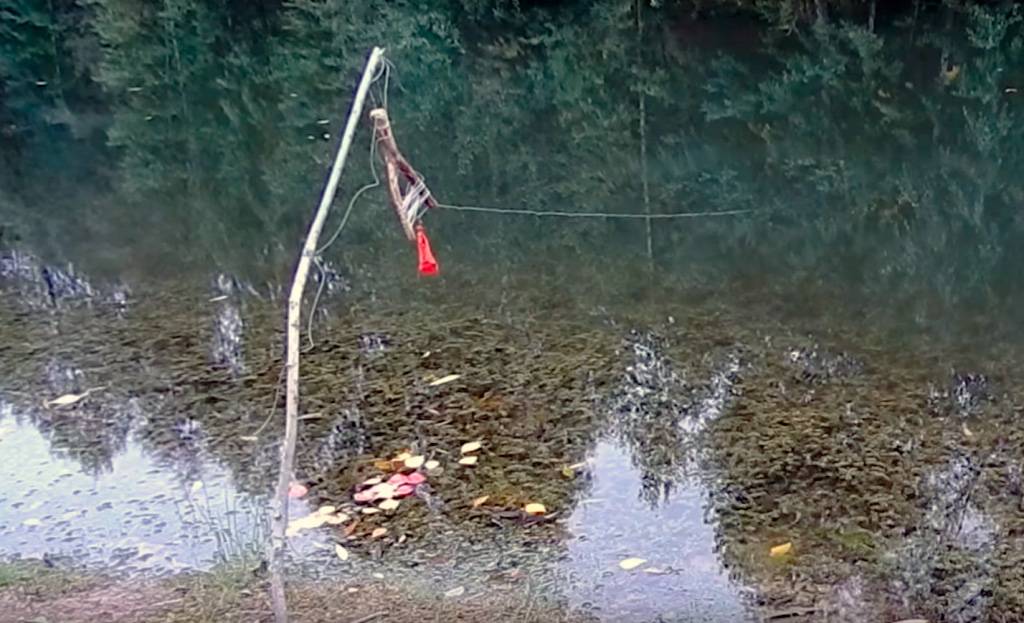 Такие жерлици расстовляют на отмелях в большом количестве, где нет кустов, чтобы привязать жерлицу, и глубина не позволяет навтукать кольев.